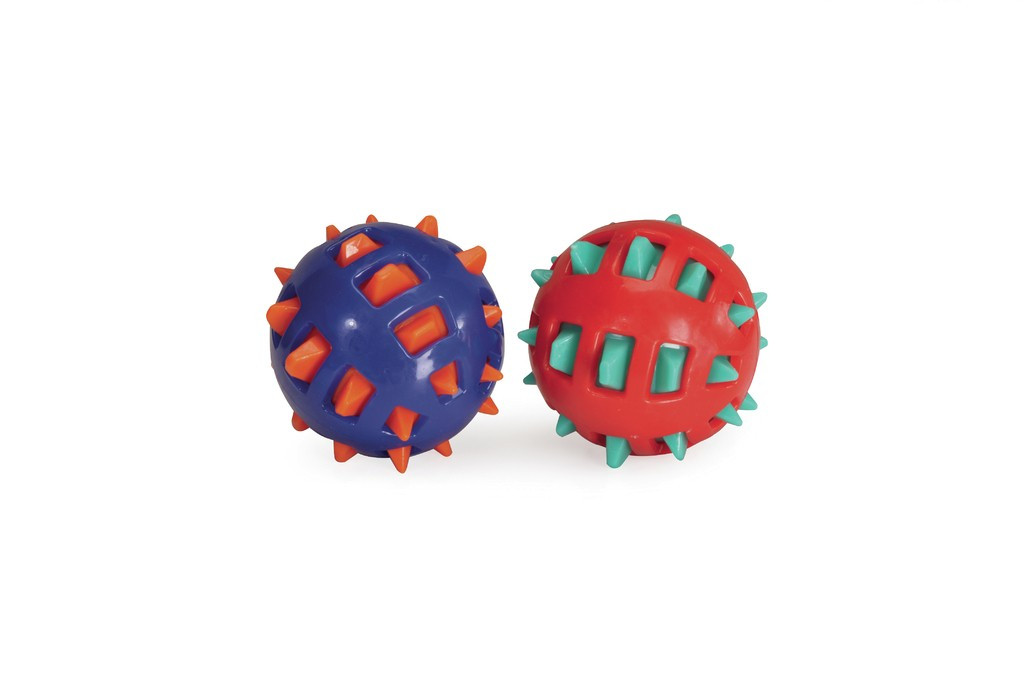 Vidám, strapabíró és színes kutyajáték tüskés TPR labda formájában.