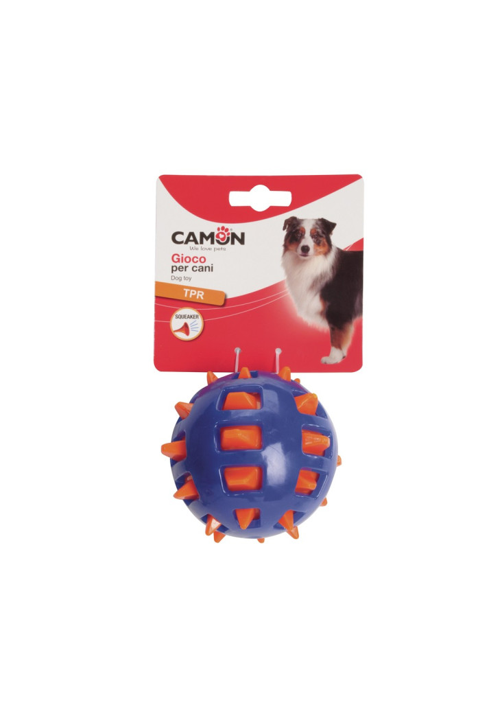 Camon AD0482 kétszínű, kerek TPR labda tüskékkel és sípoló hanggal remek választás minden játékos kutyának. Ez a tartós, mégis rugalmas játék ideális a közös apportírozáshoz, önálló elfoglaltsághoz, és segít levezetni a felesleges energiát.
