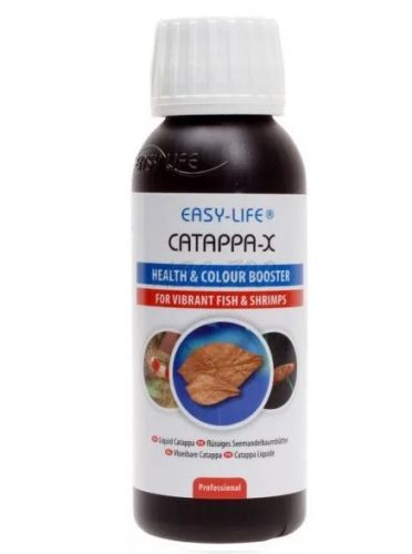 Easy-Life Catappa-X 100ml koncentrált, folyékony kivonat, amely a Catappa (indiai mandula) levelek természetes jótékony hatásait nyújtja anélkül, hogy a víz barnás elszíneződését okozná. Használatával javítható a halak egészségi állapota, erősíthető az immunrendszer, valamint támogatható a tenyésztési folyamat.