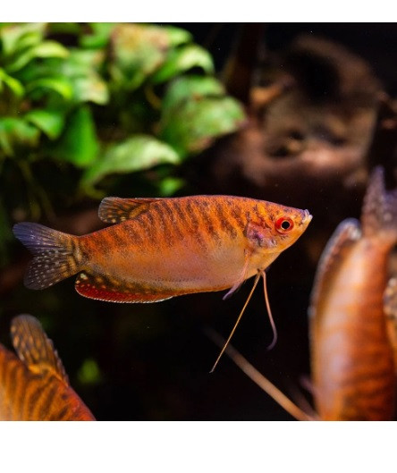 Az arany szuper red gurámi (Trichopodus trichopterus) a háromszínű gurámi egyik legdekoratívabb színváltozata. Testét élénk narancsvörös árnyalat borítja, amely a megfelelő tartási körülmények között még intenzívebbé válik. Nyugodt, békés természetével a közösségi akvárium harmonikus lakója lehet.