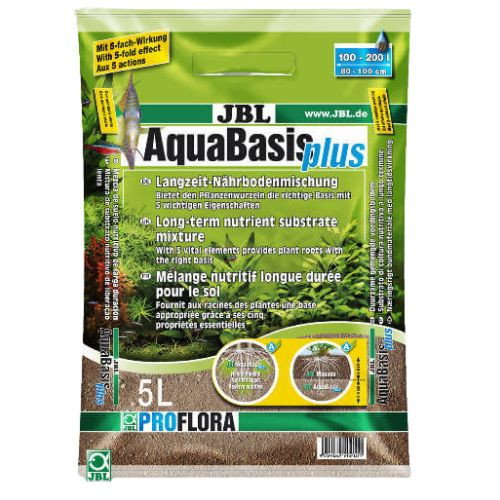 JBL AquaBasis Plus 5 l – komplett tápanyag-alapréteg nagyobb, sűrűn beültetett akváriumokhoz. Humuszban gazdag agyag- és ásványkeveréke akár 5 éven át folyamatosan látja el a vízinövényeket vassal, káliummal és minden létfontosságú nyomelemmel, így megelőzi a levélsárgulást, felgyorsítja a gyökérképződést és dús, élénk zöld lombot biztosít. Inert összetétele nem módosítja a pH-, gH- vagy kH-értékeket, ezért biztonságosan alkalmazható CO2-vel ellátott high-tech, társas vagy garnélás akváriumokban is. A pormentes granulátum nem kavarja fel a vizet, kristálytiszta indítást tesz lehetővé.