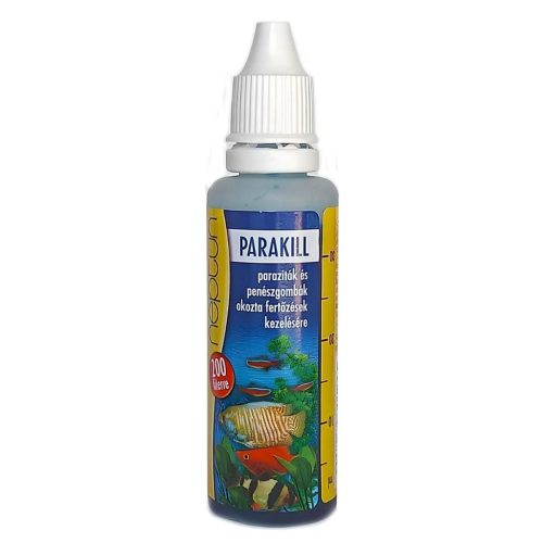 Neptun Parakil 40 ml – megbízható készítmény az akváriumi halakat megtámadó külső és belső paraziták ellen. Hatékonyan alkalmazható különféle egysejtűek, laposférgek, valamint egyéb élősködők visszaszorítására, miközben nem károsítja az akvárium élővilágát a javasolt adagolás mellett.