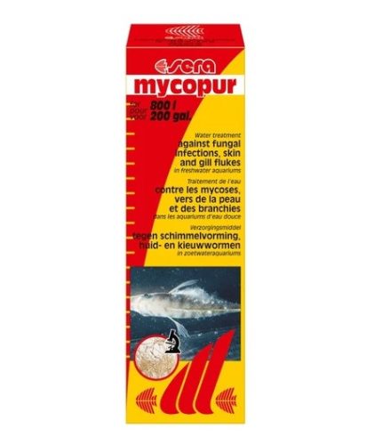 Sera Mycopur 50 ml – célzott, megbízható készítmény a gombás és külső bakteriális eredetű megbetegedések gyors kezelésére édesvízi akváriumokban. Hatóanyagai hatékonyan lépnek fel uszony- és bőrelhalás, penészgombás fertőzés (Saprolegnia), valamint enyhébb külső bakteriális problémák ellen, miközben kímélik a hasznos baktériumflórát. A kezelés már néhány órán belül enyhíti a tüneteket, minimalizálja a stresszt, és segíti a halak gyors felépülését.